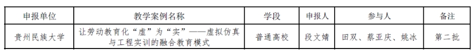 入选贵州省第二批劳动教育优秀教学案例基本情况